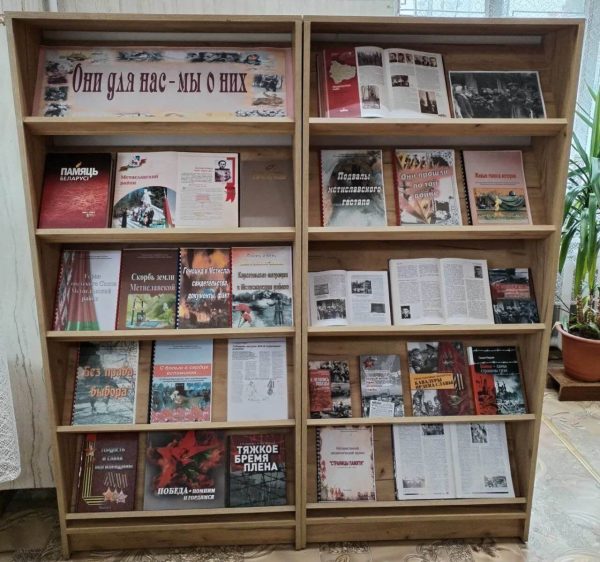 В рамках 82-й годовщины освобождения Мстиславского района от немецко-фашистских захватчиков в центральной библиотеке оформлена литературная выставка «Они для нас – мы о них». На выставке представлена историко-документальная литература о событиях, связанных с оккупацией территории района в 1941-1943 гг. Ознакомиться с биографией и подвигами наших земляков можно в информационных буклетах: «Они прошли по той войне», «Герои Советского Союза Мстиславского района» и др. В информационном дайджесте «Подвалы мстиславского гестапо» подробно описан геноцид белорусского народа на оккупированной территории Мстиславского района и о том как немецкие спецслужбы и карательные органы вербовали людей, оказавшихся в оккупации, активно боролись против подполья и зверски уничтожали тех, кто не подчинился фашистскому режиму. Выставка будет интересна широкому кругу читателей и доступна по адресу: ул. Пролетарская, 36.